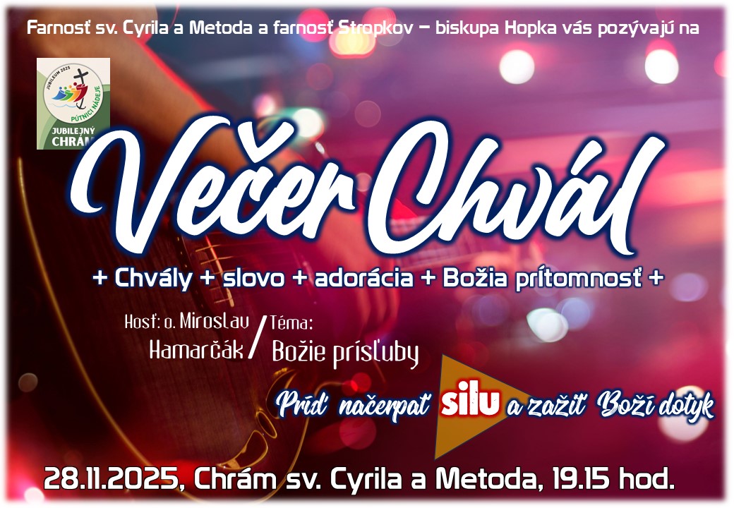 Hosťom týchto chvál bude o. Miroslav Hamarčák (@eastriest), ktorý nás povzbudí slovom na tému: Božie prísľuby. Tešíme sa na teba!