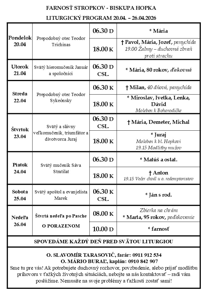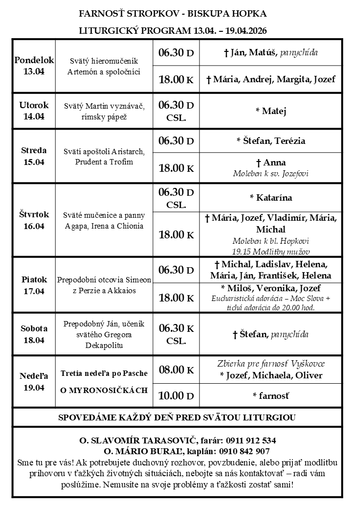 12.9.2026, NEDEĽA: liturgie o 8.00 a 10.00 hod. Tešíme sa na teba!